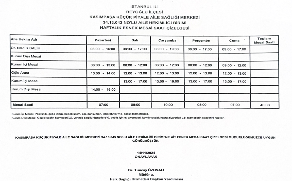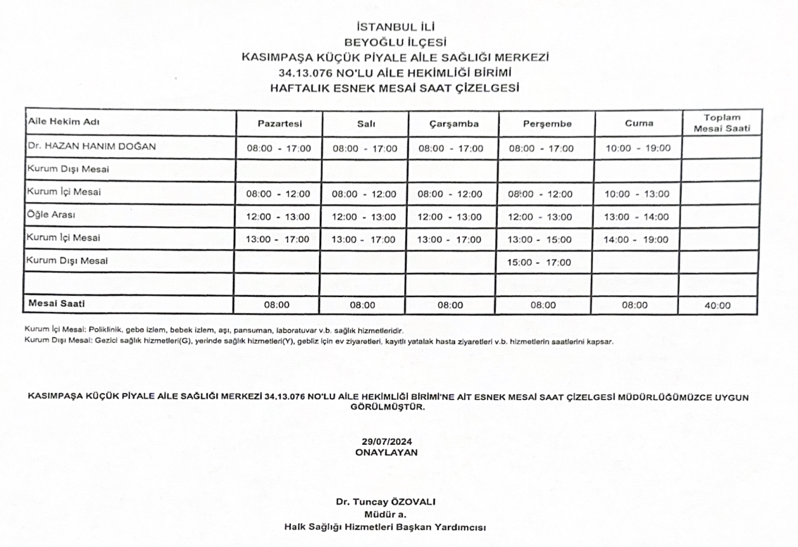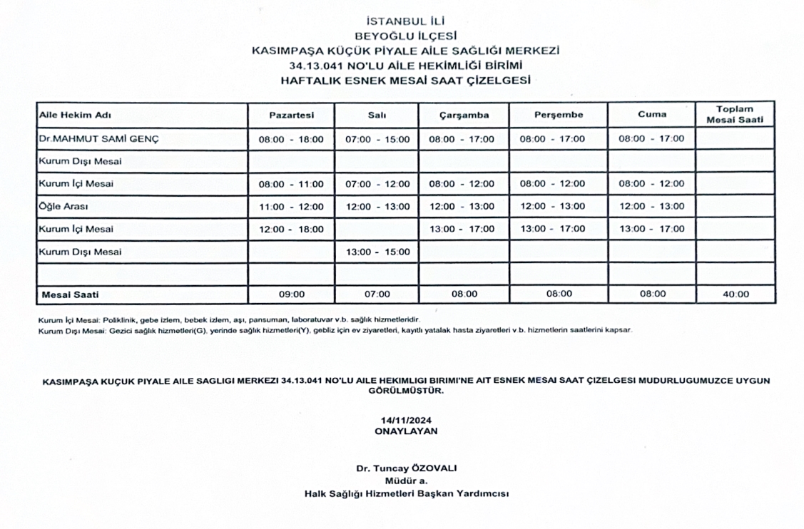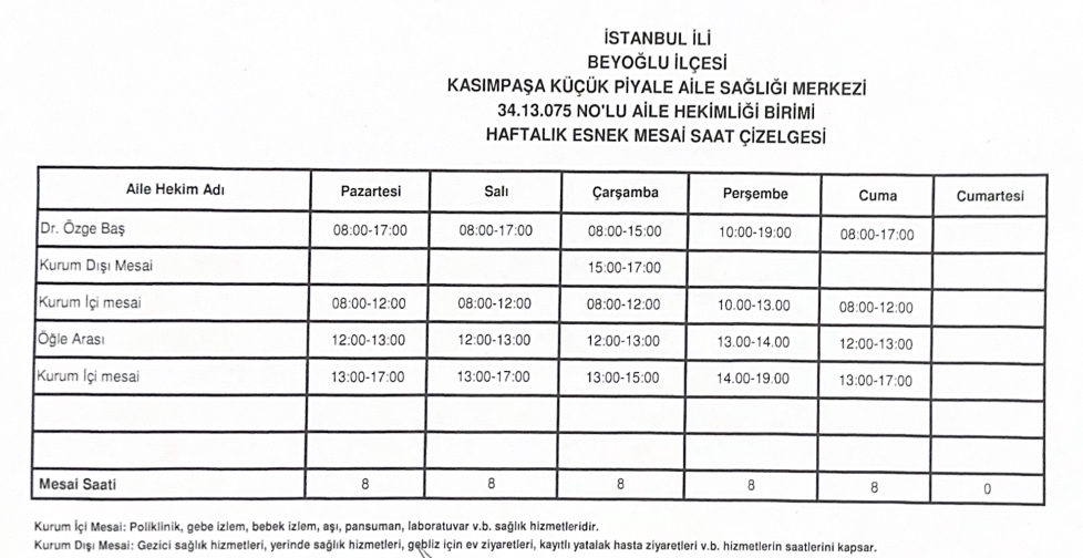 Çalışma Saatlerimiz