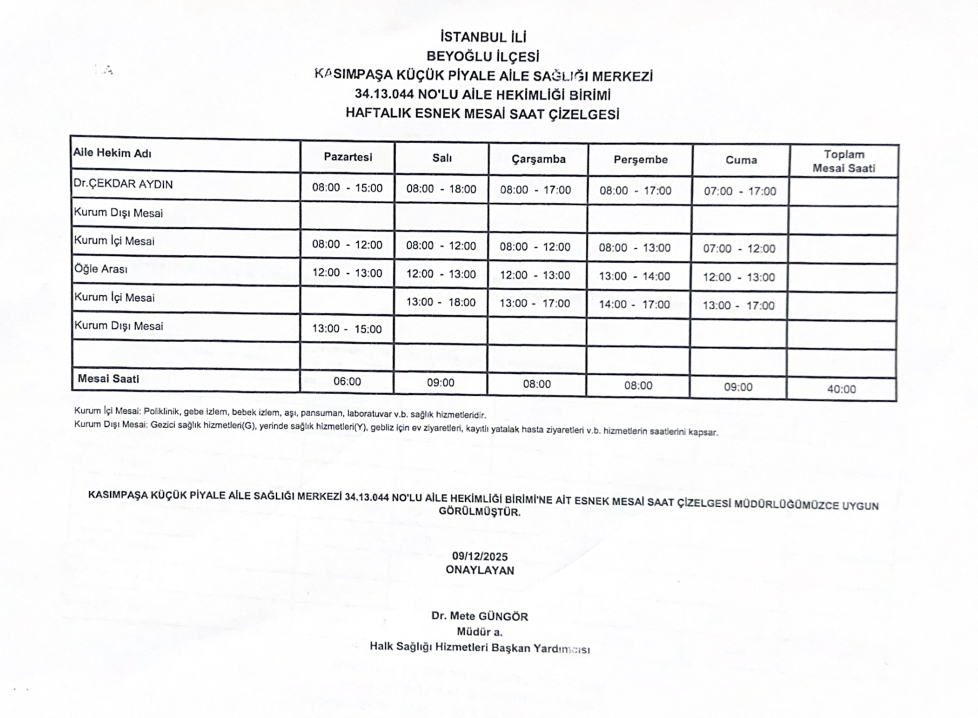 Çalışma Saatlerimiz